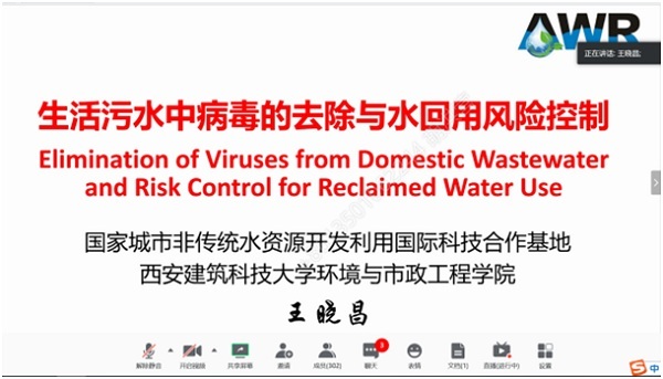 王晓昌教授结合当前新冠肺炎疫情防控对病毒的关注,做了题为“污水中病毒的去除与水回用风险控制”的报告。他系统介绍了病毒的主要来源,水处理工艺各个单元对病毒的去除作用,强调了在污水处理和水回用过程中重视病毒风险控制的重要性,并分享了对病毒控制目标和方法的系统思考。
